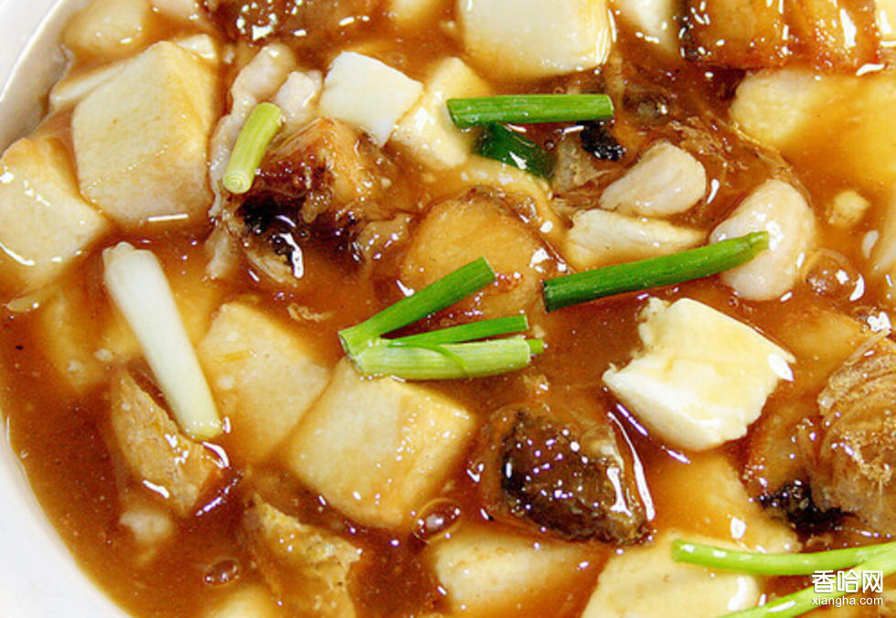 制作材料:豆腐腦(250 克)輔料:蝦仁(100 克)水發(fā)海參(100 克)干貝(25 克)白果(25 克)雞蛋(1 個)香蔥(1 棵)生姜(1 小塊)香菜(2 棵)淀粉(適量)調(diào)料:高湯(8 大匙)料酒(1 大匙)胡椒粉(1 小匙)精鹽(1 小匙)