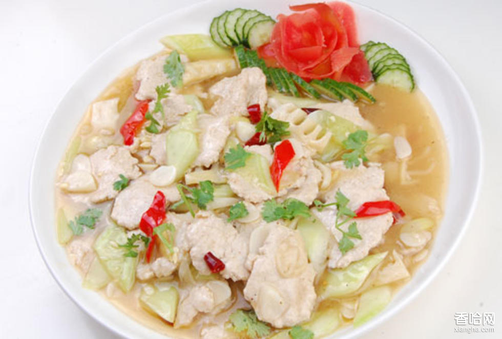 清淡中有蝦仁、帶子的鮮甜和鮑汁、冬菇的香濃,中式的內(nèi)容、西餐的形式,將中西結(jié)合得恰到好處。鮑汁略嫌多了少少。市泰安當(dāng)?shù)責(zé)衢T的特色菜系。