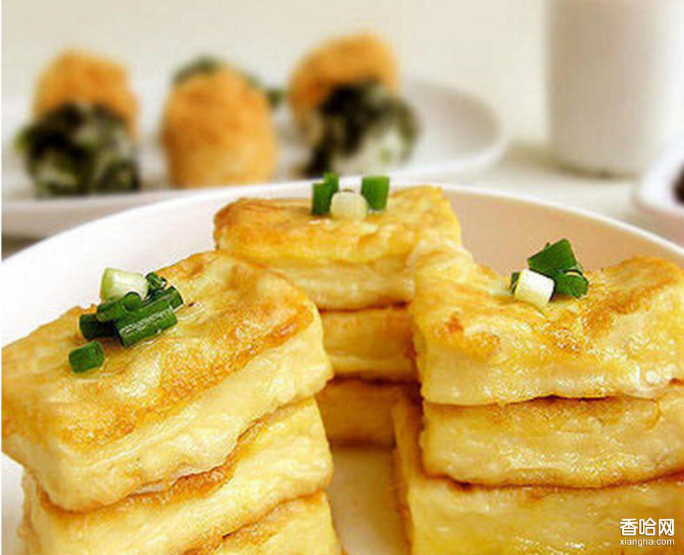 制作步驟:1、豆腐切成16片,加鹽、味精腌10分鐘,放入面粉中兩面沾裹均勻,再沾上一層蛋汁備用。2、大火燒熱炒鍋,加500克油燒至五分熱時(shí),下豆腐片炸至皮色金黃即撈出瀝油,并修去多余、不均整的蛋衣。3、鍋內(nèi)放油10克,以大火燒熱,下蔥花、姜末爆香,續(xù)下酒、高湯、鹽、蝦籽、豆腐,再將豆腐翻個(gè)面便可出鍋,盛盤時(shí)盤底可墊生菜葉作為裝飾。