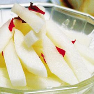 1、腌制時(shí)應(yīng)選擇大小適中、表皮包滿(mǎn)、新鮮、水分充足的白蘿卜。