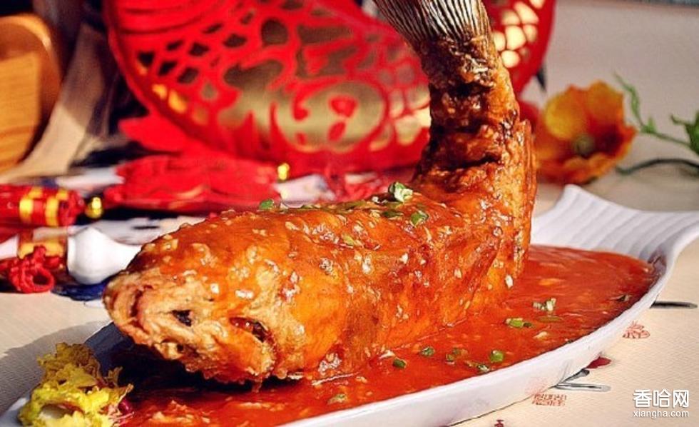此菜取材于“魚龍變化”的典故。據(jù)《三秦記》載:“龍門山,在河?xùn)|界,禹鑿山斷門一里余,黃河自中流下,兩岸不通車馬,每見(jiàn)春季有黃鯉魚,自海及諸川來(lái)赴之。一歲中不過(guò)七十二。初登龍門.即有云雨隨之,天火自后燒其尾,乃化為龍。”唐代詩(shī)人李白《贈(zèng)崔侍卿》詩(shī)曰:“黃河三尺鯉,本在孟津居,點(diǎn)額不成龍,歸來(lái)伴凡魚?!薄胺掺~”能變成龍者寥寥可數(shù),跳不過(guò)龍門者則有“點(diǎn)額”、“暴鯉”之災(zāi)。后世把在科場(chǎng)考試中名落孫山的人說(shuō)成是“點(diǎn)額而還”。