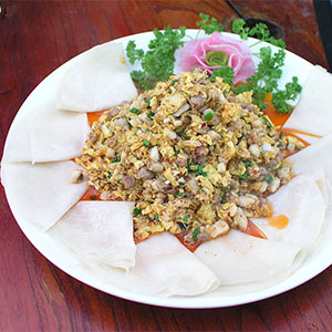 3、花椒水去膻味是最重要的,可以在剁肉的時(shí)候分次添加,也可在攪拌肉餡時(shí)分次添加;