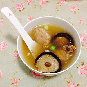 材料:排骨,香菇,姜片,料酒,糖,鹽,少許雞精(可不加)