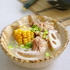 原料:玉米,排骨,蓮藕,蔥,姜,料酒。