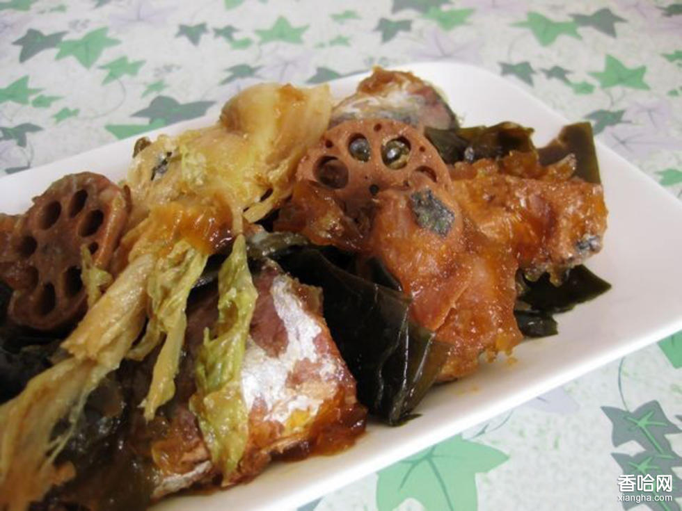 由于酥鍋菜用料廣泛,食用方面,香酥可口,再加易學(xué)好做,以至廣為流傳。酥鍋的原料主要有白菜、藕、海帶、凍豆腐、雞、鴨、肉、魚、排骨、豬蹄等,須依次分層擺放,調(diào)料有醋(使原料酥爛)、糖(中和諸料之味)、黃酒(除腥臊)以及香油、醬油、鹽、蔥、姜、花椒等。制作時先用急火燒開,然后用文火燒至肉魚骨刺酥爛為止。離火涼透后,隨吃隨取。