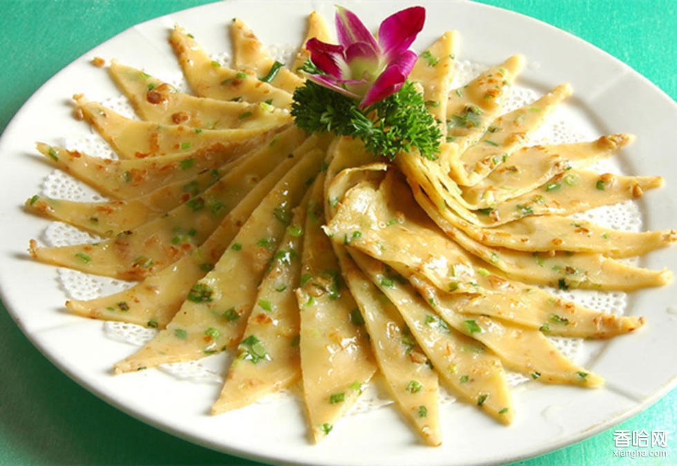 清油盤絲餅之所以叫“清油”,是相對葷油而言,用花生油來煎烙的?!氨P絲”才是此餅的造型特色。它是以抻面的基礎(chǔ)上發(fā)展起來的一種精細(xì)面食品。制作時(shí)把面抻至極細(xì),細(xì)如銀絲,達(dá)千余根,再盤成圓餅形,放油中半煎半烙使之變熟。然后,提起中間把餅拉散,散放盤中,撒上青紅絲、白糖即成。盤絲餅外焦里嫩,金絲均勻,味甜爽口,是宴席上的佳品點(diǎn)心。特點(diǎn):外焦里嫩、金絲均勻,味甜爽口,條細(xì)均勻,絲不并、不斷、不亂。