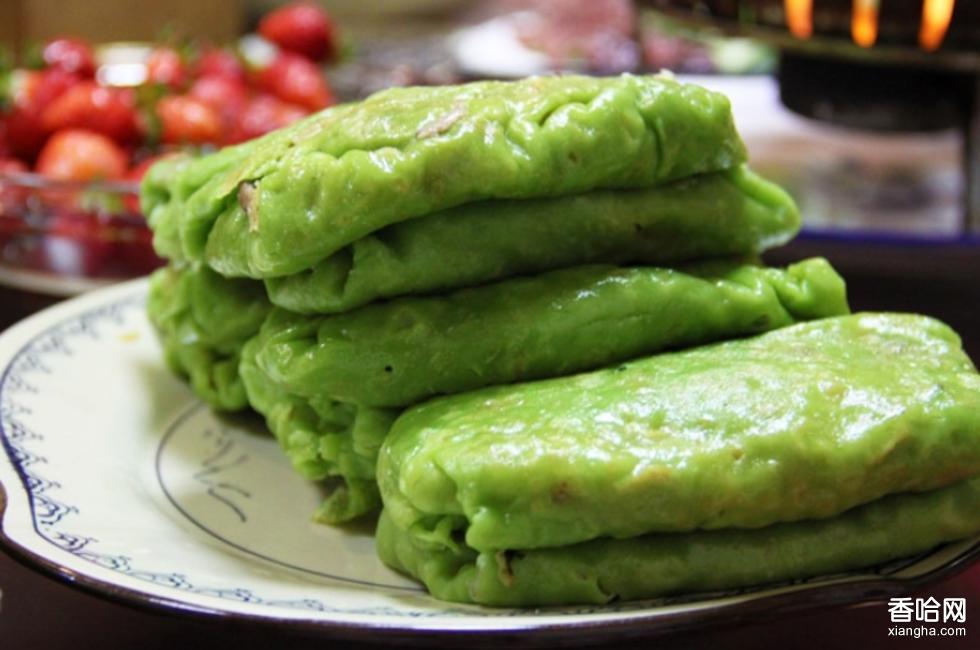 原料為純真的大米和碧綠的韭菜。制作時(shí)將大米泡入清水之中,約二、三小時(shí)后,再將韭菜切細(xì),將大米和韭菜拌勻,用磨漿機(jī)或石磨磨成翠綠色的米漿,用旺火燒熱鐵鍋,放入油料,用小勺子一勺勺地將米漿倒入鐵鍋里攤平烤成薄薄的韭餅,再在薄餅上抹些油料,放上餡料,卷成筒狀,由于薄餅顏色碧綠,酷似碧玉,故譽(yù)為“碧玉卷”。制作這種碧玉卷的陷料十分講究,有的用香菇絲、鮮筍絲、腌肉絲、配上薤子、辣椒粉、味精、香油炒成餡料,吃起來(lái)別有風(fēng)味。這種風(fēng)味小吃,趁熱食之,香軟潤(rùn)華、咸辣可口、色香味俱全。
