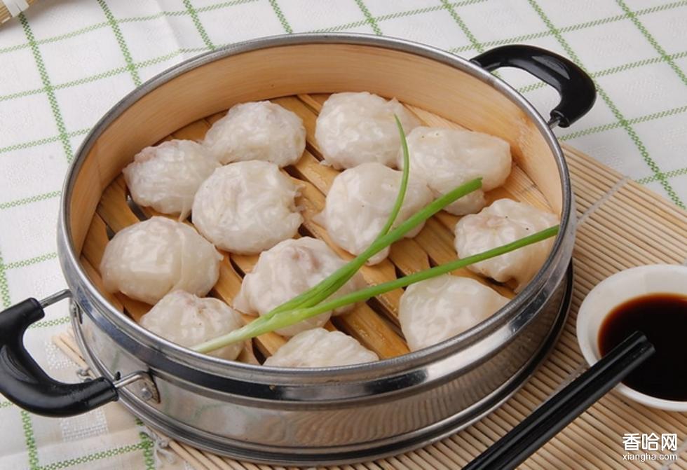 ⑷其他地方燒麥搟制皮坯時(shí)拍粉用面粉或玉米淀粉,沙縣燒賣(mài)用木薯粉拍粉, 木薯粉熟后透明,其他則不然,加上蒸熟后刷上豬油,晶瑩剔透,誘人食欲;