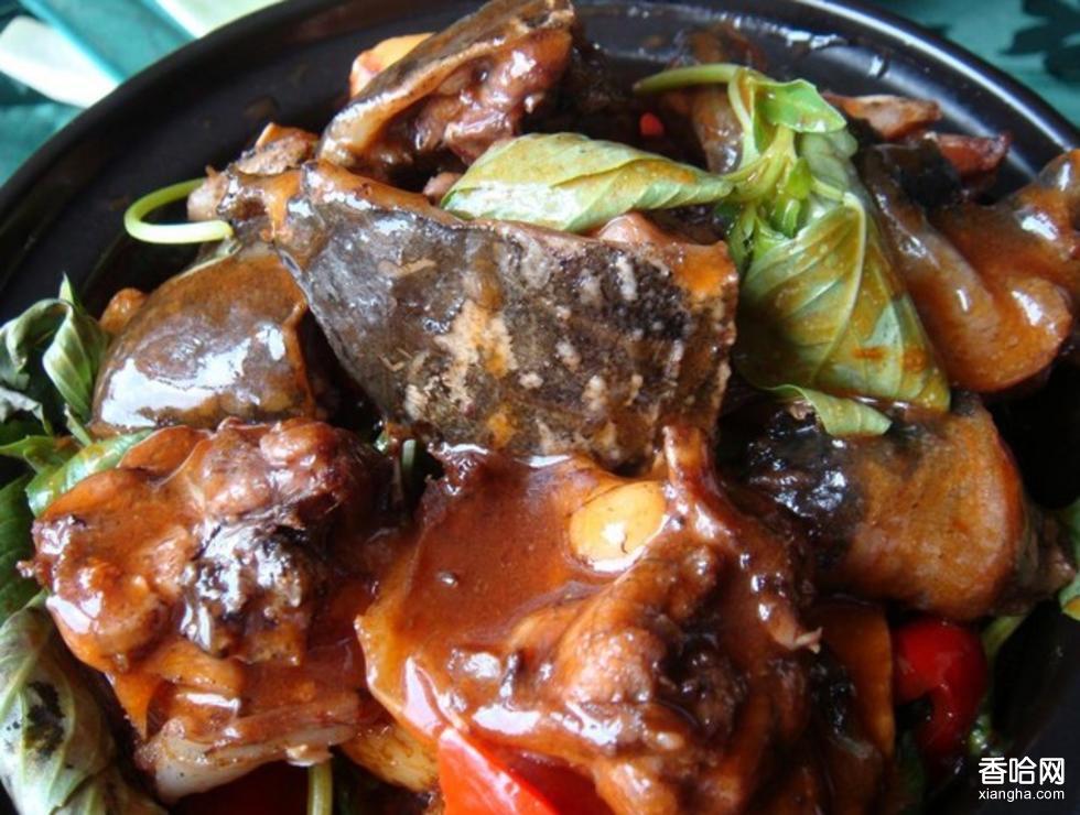 先將甲魚斬去頭,放入沸水鍋內燙片刻撈出,用清水刮凈白膜和粘液,用刀沿魚背殼四周剖開,取出內臟洗凈,剁成2.5厘米見方的塊。然后將腳魚盛入砂缽內,放入豬油、醬油、甜酒娘、蔥結、姜塊,加蓋用旺火燒沸后,移置小火上,燜至酥爛,然后上旺火收稠鹵汗取出蔥結、姜塊,放入味精,撒上椒粉,淋上麻油裝盤即成。特點:味香濃醇,原汁原味。