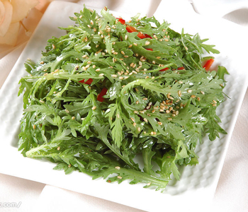 1、取洗凈、切段的的茼蒿,放入沸水鍋內(nèi)焯燙,撈出過涼,加上精鹽、米醋和香油等調(diào)勻食用.有健脾胃、助消化的功效.對(duì)于食欲不振者有良好的輔助治療作用。