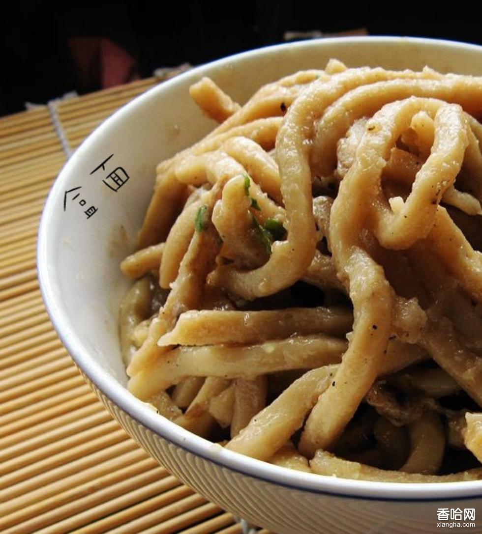 在古田街頭都有擺攤,出門在外的古田人,回去的話一般會去吃次盒面。古田人很講究吃,有許多特色小吃名聞暇爾。比如盒面,只在古田有賣,它的用料很特殊,首先,面用得是閩東特產(chǎn)的“大條面”,口感嫩滑有韌性;再則,配料除了特制的蒜頭醋外,加入了一種神秘佐料,有一種特有的香味。