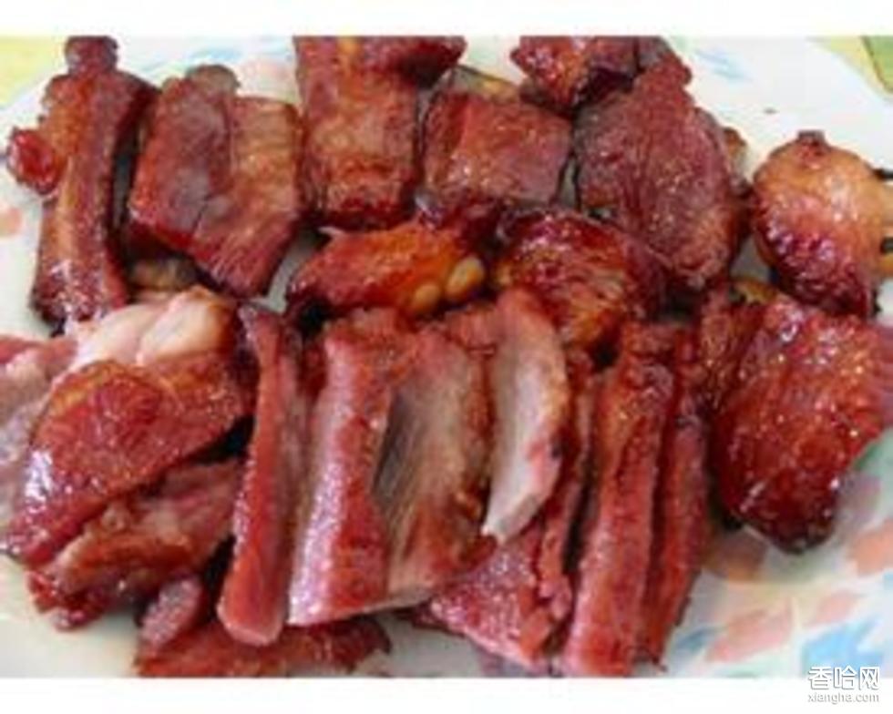 4、從爐口封閉時(shí)算起,過45分鐘烤肉既熟,掀開大鍋,抬出烤肉掛起,用刀刮去豬皮上焦糊的外層,而后取肉切成薄片即可食用。