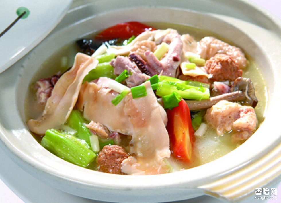 原料:江西省新余市羅坊鎮(zhèn)當(dāng)?shù)赝霖i肉、羅坊土雞一只。農(nóng)家味濃,鮮香、滑嫩