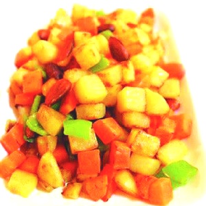菊花6克、胡蘿卜100克、蔥花5克,食鹽適量,香油5克,先把胡蘿卜洗凈切成片,放入盤中待遇。鍋上火,注入清湯,放入菊花、食鹽、胡蘿卜后煮熟,淋上香油,撒入味精,出鍋后盛入即可。有胃寒病者忌食用,胡蘿卜忌與過多的醋酸同食,否則容易破壞其中胡蘿卜素。