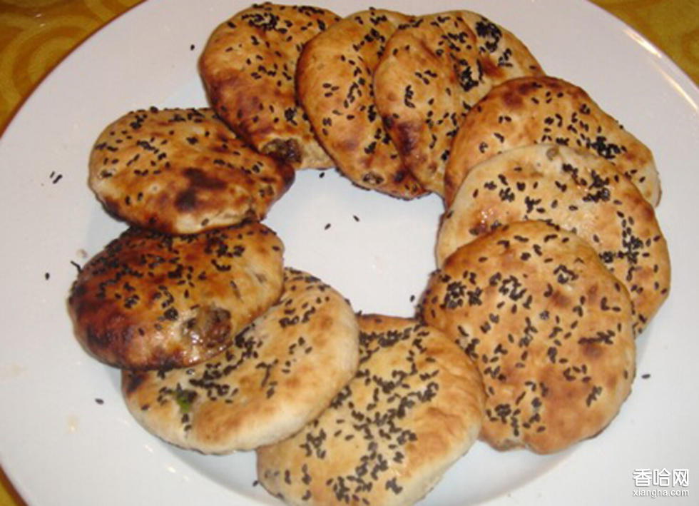 5、用炭火燒烤3—4分鐘,待餅面金黃,香味溢出時,用特制鐵鉗鉗出即成。