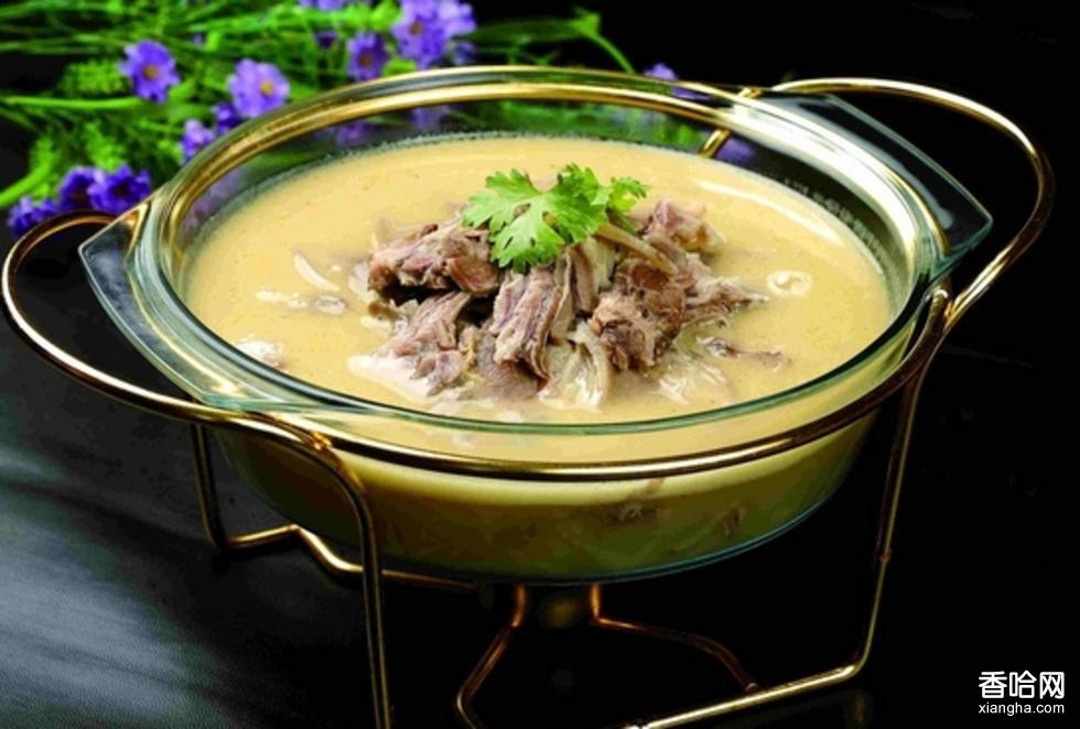 它的做法是把玉米在水里浸泡一星期左右,之后用磨磨成水面,再用細(xì)紋布袋將水面里的粗渣子過濾掉,然后把過濾后剩下的細(xì)面放在缸里進(jìn)行發(fā)酵,到有點(diǎn)酸味的時(shí)候撈出來,就變成湯面了?,F(xiàn)在這酸湯子不僅在滿族的莊戶人家能吃到,到城里的滿族風(fēng)味飯店里也可以點(diǎn)到這種食品。