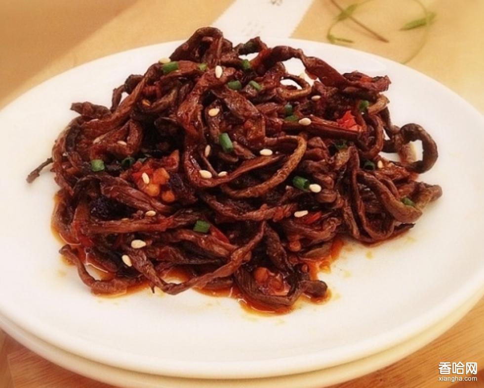 制法:將蕨菜洗凈,入沸水中焯一下,撈出后入冷水中浸泡半小時(shí)后切寸段備用。炒鍋上火,倒入色拉油,油熱入香辣醬和蔥絲煸炒出紅油,入蕨菜段翻炒幾下,入鹽,味精同炒片刻即成。