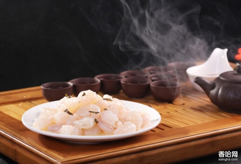 原料:活大河蝦1000克,龍井新茶1.5克,雞蛋1個,紹酒1.5克,精鹽3克。味精2.5克,淀粉40克,熟豬油1000克8