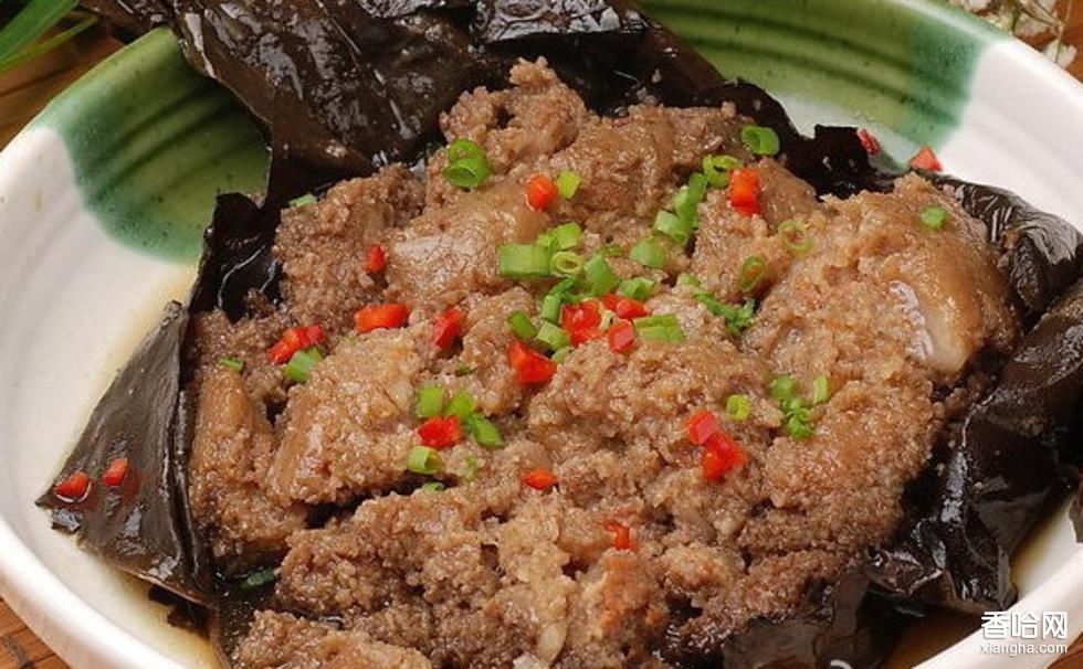 片肉的規(guī)格,長(zhǎng)二寸五,寬一寸三,厚一分,為防蒸熟后變形,還需用刀背上在肉上橫批二三刀。拌料主要有蝦米末浸泡的紅方腐乳鹵、白糖、硝水、曲酒、潭粉蒸肉粉等。