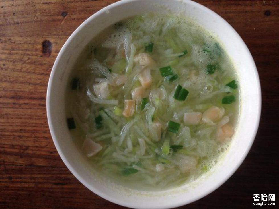 干貝…12克,紹酒…15克,白蘿卜…500克,濕淀粉…10克,火腿…10克,雞湯…300克,冰糖…1.5克,小蔥末…5克