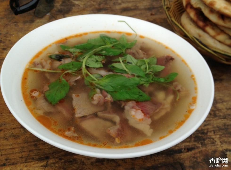 插花牛肉湯,是安徽阜陽著名的漢族小吃,插花高家牛肉湯起源于清朝道光年間,發(fā)展至今已有近200年的歷史。其原湯采用牛骨、上乘牛肉等原料添加眾多調(diào)料,用文火熬制而成,口味純正,回味悠長。