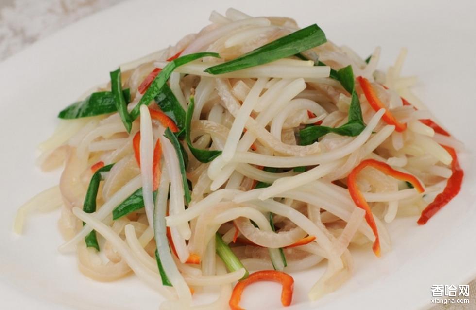 皮絲,是阜陽的特產(chǎn),又稱春祥皮絲,系新鮮豬皮經(jīng)十多道工序加工而成,外觀金黃途亮,薄如蟬翼,食之滑而不膩,味美絕倫。上等的皮絲經(jīng)高級廚師烹調(diào)后,則成為招待客人的宴賓名菜,一般不可多得。阜陽皮絲