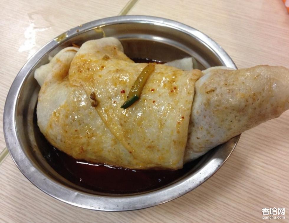 四個(gè)薄軟的圓形外皮,攤好疊放在一起,從蒸汽火鍋里撈出煮好的味道鮮咸,帶點(diǎn)鹵味又不是很種口味的菜:豆芽,黃瓜,面筋放如皮上,卷起.另外你也可以自選加入雞蛋,香腸和調(diào)味料:辣椒醬和香菜。一起卷入饃皮中,一個(gè)味道不錯(cuò)的田三卷饃就是它了。