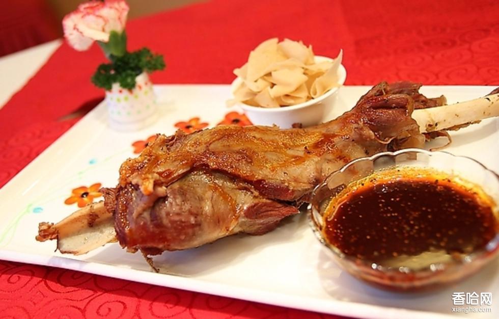 烤羊腿,是蒙古族名菜,是從烤全羊演變而來。相傳,生活在中國北方廣闊大地上的狩獵和游牧的民族,常在篝火旁烘烤整只的獵物和整羊進(jìn)食。人們逐漸發(fā)現(xiàn)整羊最好吃的部位是羊后腿,便經(jīng)常割下羊后腿烘烤。單獨(dú)烘烤的羊后腿不但比烤整羊時(shí)間快,而且更加味道鮮美,食用方便,烤羊腿遂逐漸代替了烤整羊。