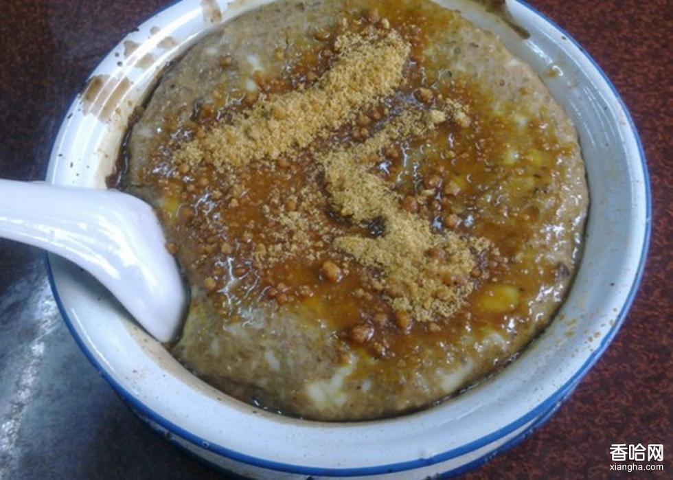 “糊拉汰”實(shí)際上應(yīng)該寫成“糊拉拖”,只因?yàn)樘炫_(tái)方言中的“拖”字是念成“汰”的,才這樣寫?!昂稀?,顧名思義是把麥粉調(diào)成稀薄而不失其粘性的糊狀,用手把它放在鍋?zhàn)永锿侠蓤A形的薄餅,一次一個(gè),用不到一分鐘就熟。制作方便,香脆可口,是天臺(tái)鄉(xiāng)民的家常便飯之一。