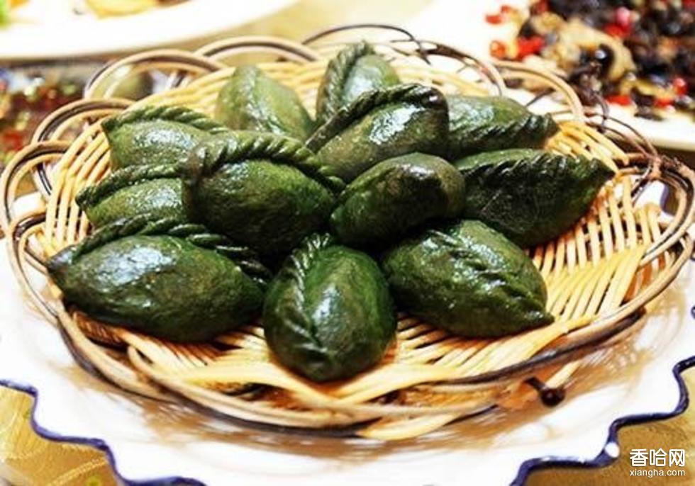 將采來的艾青洗凈、煮熟、搗爛,拌入糯米粉,揉拌成青團(tuán),然后包入甜、咸兩種餡子,捏成餃子狀,用蒸籠蒸熟后便可食用。