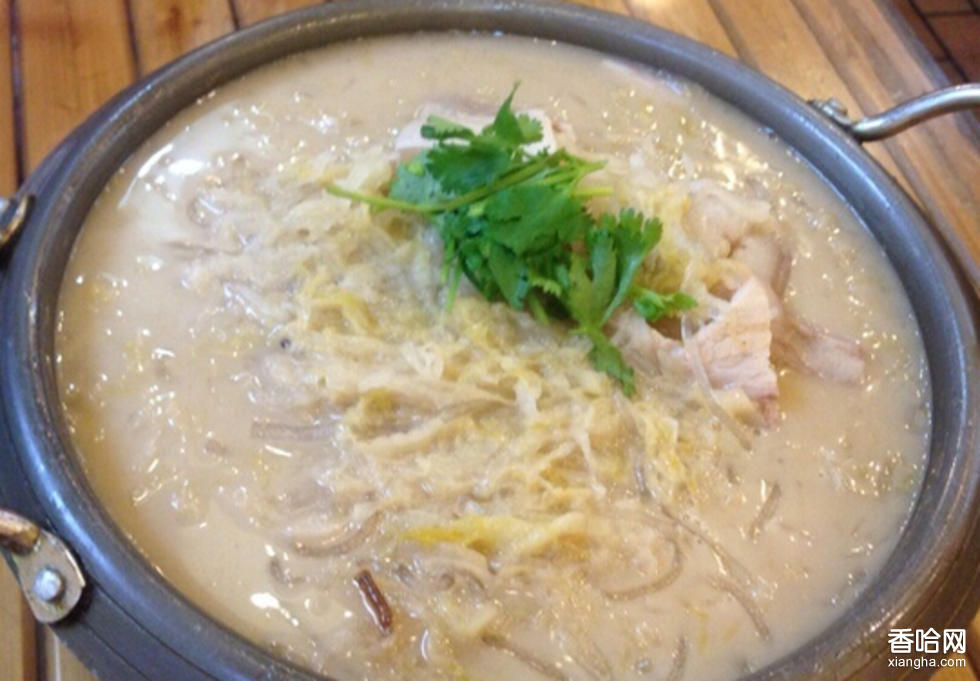(1).把腰排肉的皮面刮凈,煮熟后切四寸長薄片。酸菜片開,切細(xì)絲,洗凈擠干水。海米、細(xì)粉泡開。(2).把煮肉湯燒開,撇去浮沫,下酸菜絲、海米、白肉片、精鹽,燒開三分鐘后,放入細(xì)粉、味素,用慢火燉幾分鐘即可。食用時(shí)蘸腐乳、韭花醬。