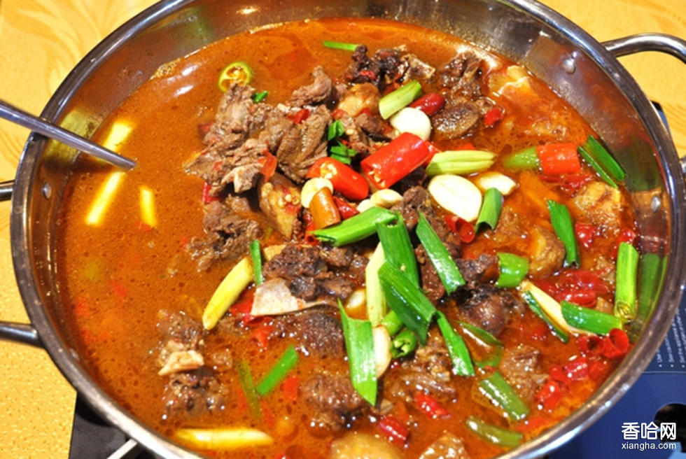 到了延邊朝鮮族自治州,不吃狗肉可不行。跟全國其它地方一樣這里也流行吃火鍋,朝鮮人的狗肉火鍋。特色鍋底,燉的是狗肉,狗雜狗排骨。除了鮮就是辣??赡苁茄蛹洌虼斯啡獯笱a(bǔ)還要加辣椒。一年四季吃,夏天吃最好,治感冒!