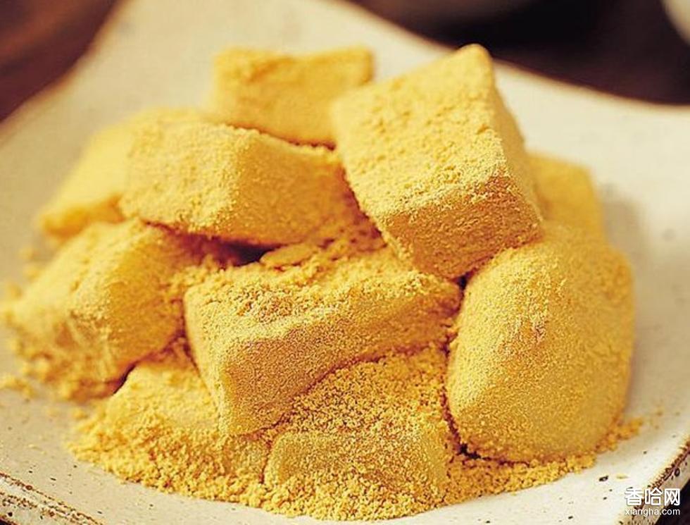 (4)最后,撒上豆沙或熟豆面便可以食用。喜甜食的,可蘸上糖;喜咸的,可佐上鹽。此打糕粘潤可口,味道清香。