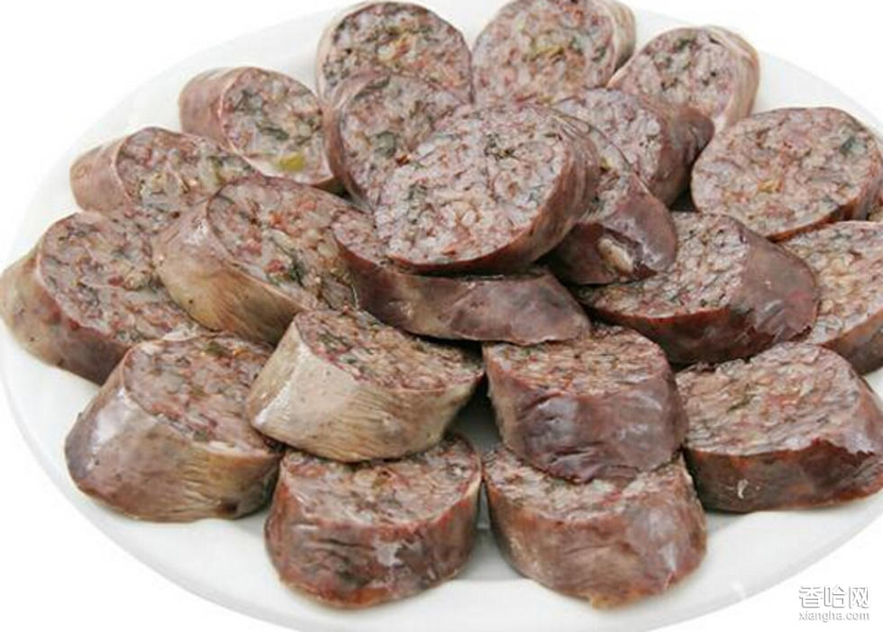 制作方法:1.豬大腸用精鹽、醋搓洗干凈,放入冷水中浸泡2小時(shí)左右,取出,剪成1米長的段。2.卷心菜用開水燙過,切成絲,豬板油切成丁,鮮豬血攪碎,濾出血渣。3.大米、糯米一起洗凈,加入豬血、卷心菜、豬油丁、熟豆油、醬油、精鹽、蔥末拌勻。4.豬腸一端用麻線扎住,將調(diào)好的米餡料從另一端灌入腸內(nèi),再用麻線扎住,放入熱水鍋中,用小火煮至熟透取出,晾涼切片裝盤,另用熟豆油、辣椒面、豬肉湯、蒜泥、味精對成調(diào)味汁蘸食。