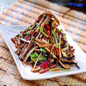 蕨菜只有少數(shù)可食用,莢果蕨、鹿角蕨菜與肉桂蕨可食用。蕨菜可以冷食也可熱食。蕨菜可鮮食或曬干菜,制作時(shí)用沸水燙后曬干即成。吃時(shí)用溫水泡發(fā),再烹制各種美味菜肴。下面介紹一道豬肉炒蕨菜。