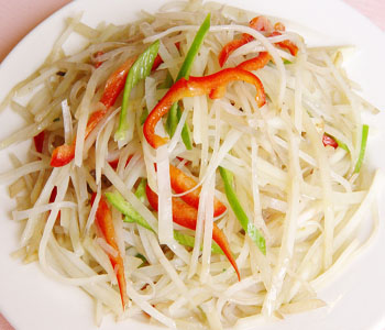 酸辣青椒土豆絲的做法一: