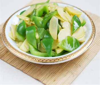 6、下青椒煸炒。
