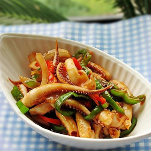 在魷魚豐富的各種礦物質(zhì)下,辣椒的加入猶如錦上添花,使得人們?cè)谑秤徽駮r(shí),看見請(qǐng)假炒魷魚會(huì)有食欲大開的功效,而且青椒炒魷魚的營(yíng)養(yǎng)還能夠使得人在享受美味,在食欲的驅(qū)使下,人也會(huì)變的更加健康哦~