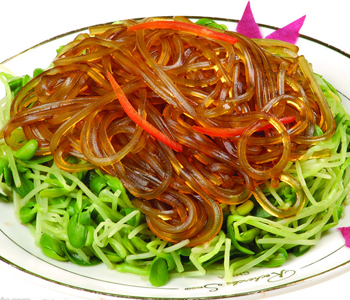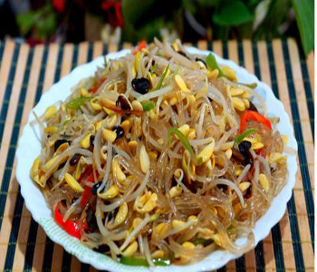 綠豆芽中含有豐富的蛋白質和多種氨基酸,粉條則富有極高的熱量。所以這道菜也很適合青少年食用,可在其生長發(fā)育、新陳代謝方面發(fā)揮良好的作用。