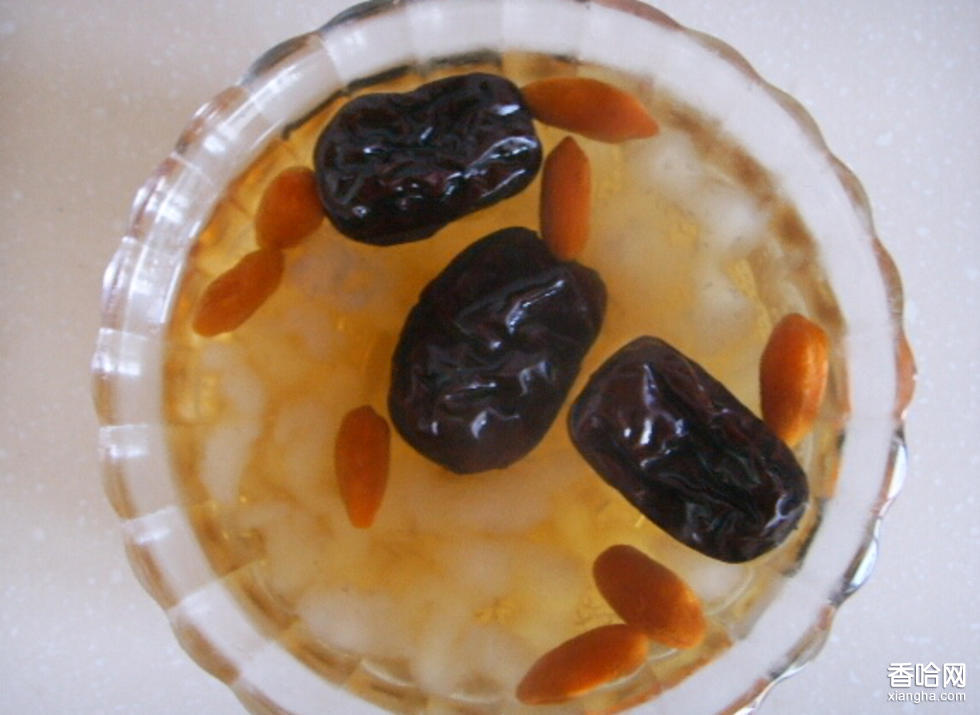制作方法:1.雪蛤泡水,挑除雜質(zhì);枸杞、人參洗凈;冰糖放入鍋中加入1杯滾水煮融。2.枸杞、人參放入碗中,加入2杯水,移入蒸鍋中蒸至香味溢出,取出,加入雪蛤及煮融的糖水即可。