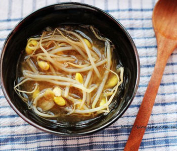 材料:綠豆芽、牛骨高湯、大蔥、蒜泥、醬油、鹽、胡椒粉