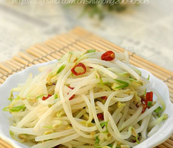 4、綠豆芽性寒,在烹調(diào)的時(shí)候應(yīng)該適當(dāng)加上一點(diǎn)姜絲來(lái)中和,十分適合夏季食用。