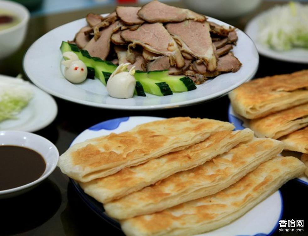 李連貴熏肉大餅,是吉林省四平市著名傳統(tǒng)風(fēng)味之一,1908年由河北灤縣柳莊人李廣忠(乳名連貴)在梨樹縣始創(chuàng)。熏肉用10余種中藥煮肉,大餅用煮肉的湯油加面粉、加調(diào)料調(diào)成軟酥,抹在餅內(nèi)起層,便于夾肉而食。再配以蔥絲、面醬、大米綠豆粥、棗水同食,更是別有風(fēng)味。