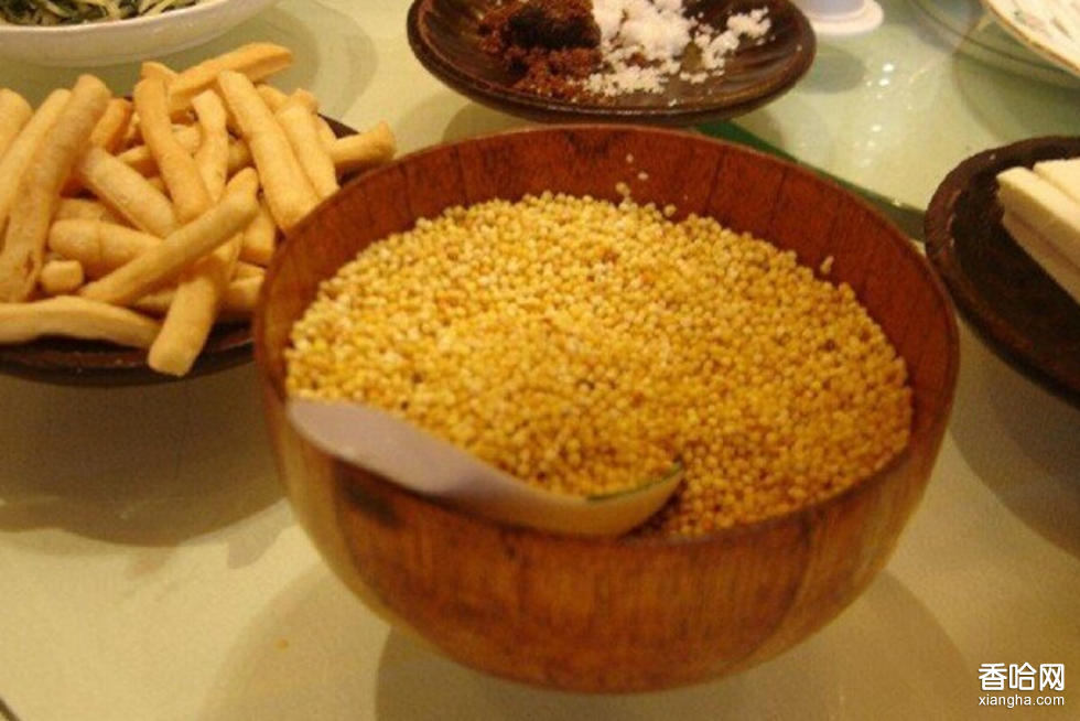 炒米,蒙語叫做“蒙古勒巴達(dá)”,就是蒙古米的意思。它是用糜子經(jīng)過蒸、炒、碾等多道工序加工而成的,再對上酸奶和白糖等攪拌,解餓又解渴,清香爽口,是別具風(fēng)味的傳統(tǒng)食品。炒米是大多數(shù)牧民的早飯,再配上加入酥油和少許青鹽的奶茶。牧民外出放牧,都隨身攜帶一小袋炒米。到了中午,煮好奶茶,泡上炒米,邊吃邊喝,十分方便。