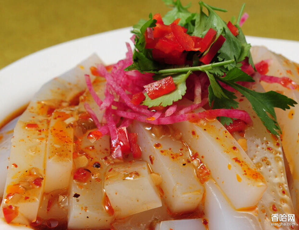沙米涼粉,系民勤縣傳統(tǒng)純天然無污染美食珍品,選用騰格里沙漠和巴丹吉林沙漠野生沙米為原料,浸水6—8小時(shí),用太陽射線消過毒的麥秸揉搓粉碎,置瓷器內(nèi)揉搓取汁三次,然后用草木文火加熱成漿,盛于瓷器中冷卻,至清秀晶亮?xí)r翻轉(zhuǎn)倒取,或攤涼于案上制成粉皮。食用時(shí),切成條狀,配以蔥、蒜、鹽、辣椒、芝麻、民勤陳醋,芳香撲鼻,令人口舌生津。