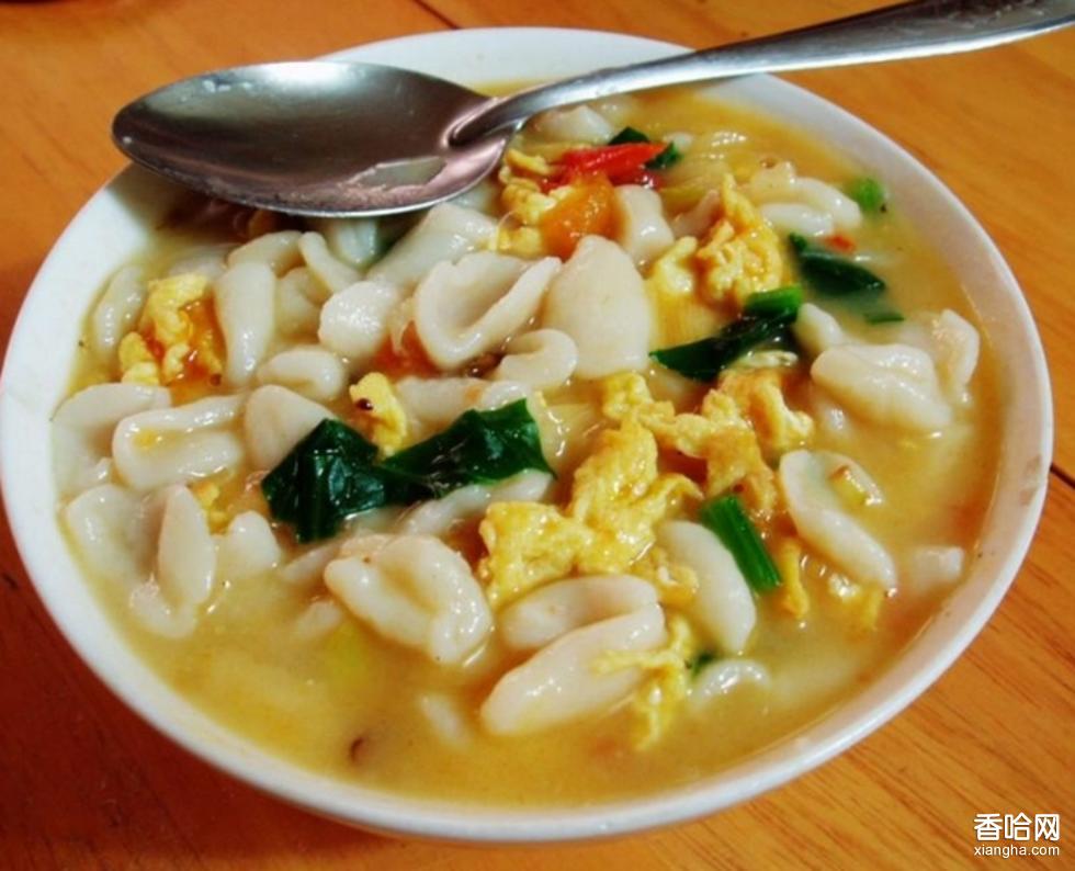 貓耳朵湯,是阜新地區(qū)具有獨(dú)自特點(diǎn)的蕎面系列主食之一。把蕎面和好,揪成小劑子放于手掌上,用拇指捻成貓耳朵形狀投入燒開的湯里,故稱“貓耳朵湯”。貓耳朵湯要配在雞湯或骨肉湯里,湯內(nèi)貓耳尤如一顆顆小“珍珠”上下浮動(dòng)。食前放入香菜沫,西紅柿片等各種小佐料即可,其特點(diǎn)是形似小貓耳朵,小巧玲瓏,色澤鮮明,口感滑潤(rùn)。味道鮮美無(wú)比,回味無(wú)窮。