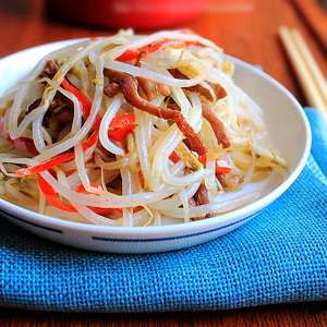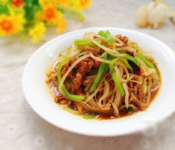 現(xiàn)在社會提倡食用天然健康的食物,綠豆芽是近年來被自然食用主義者推崇的一種食品,清脆爽口,做起來也方便,最重要的是它清熱解毒,對身體健康非常有好處,也不會發(fā)胖。綠豆芽這樣上好的清熱解毒的蔬菜,加上富含動物蛋白和營養(yǎng)的肉絲,可謂葷素搭配、相得益彰。那么具體的過程應(yīng)該怎么做呢?