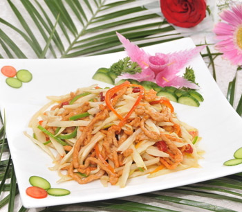 材料:豬里脊肉、竹筍、木耳、雞蛋清、蔥、干辣椒、大蒜、姜、芝麻油、鹽、紹酒、味精、濕玉米粉、醬油、水淀粉、植物油