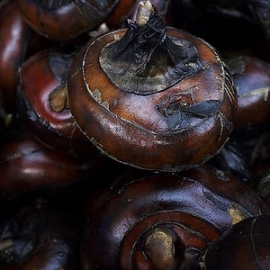 荸薺有很多別名:烏芋、馬蹄、地栗、紅慈姑,一般比較多人叫的是馬蹄。荸薺是莎草科植物,扁圓形,上面尖,表面光滑有光澤,紫紅色或者黑褐色,生長在池沼中,地上的深綠色莖叢生,地下的球莖可供食用。因它形如馬蹄,人們也稱它馬蹄。其外表像栗子、不僅是形狀,連性味、成分、功用都與栗子相似,又因它是在泥中結(jié)果,所以又有“地栗”之稱。