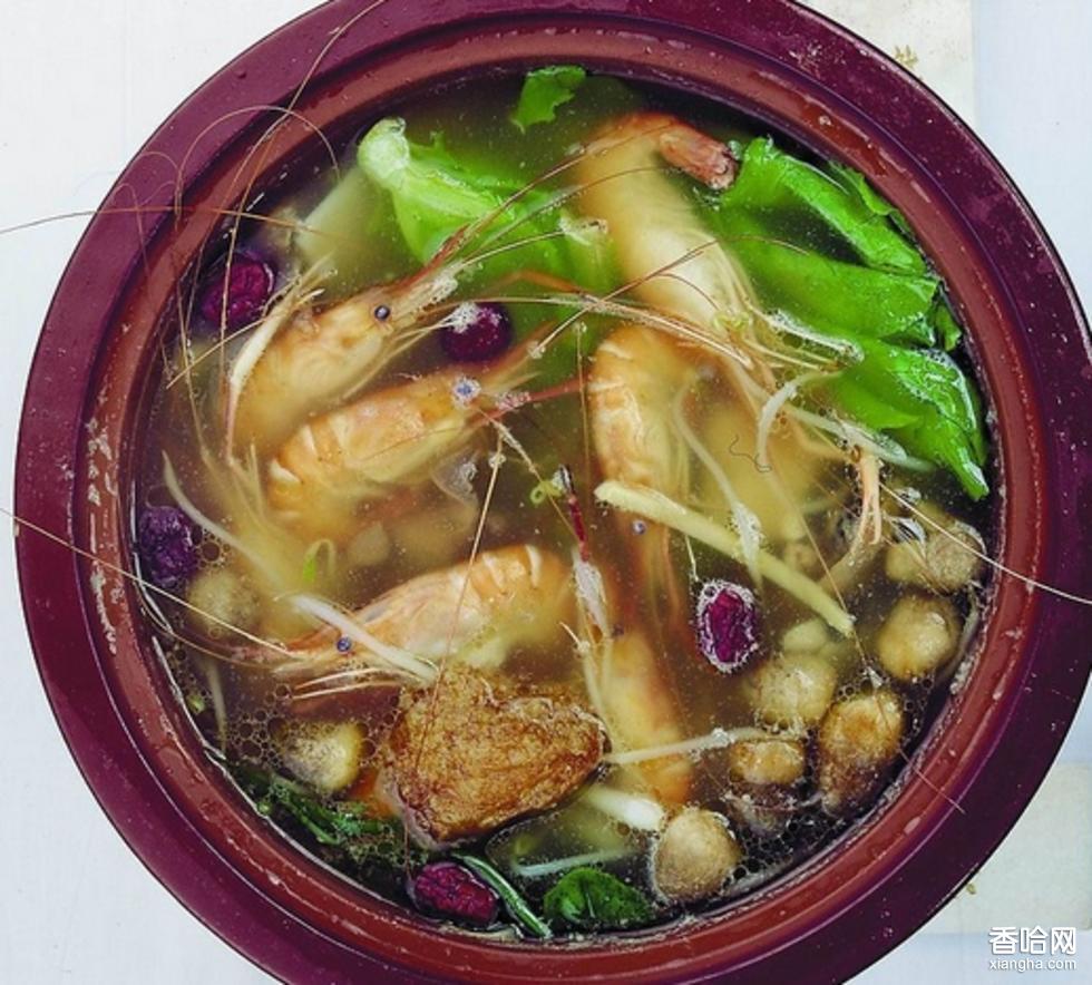 主料:蛤蜊、蝦、鯽魚(yú)輔料:金針菇、口蘑香菇